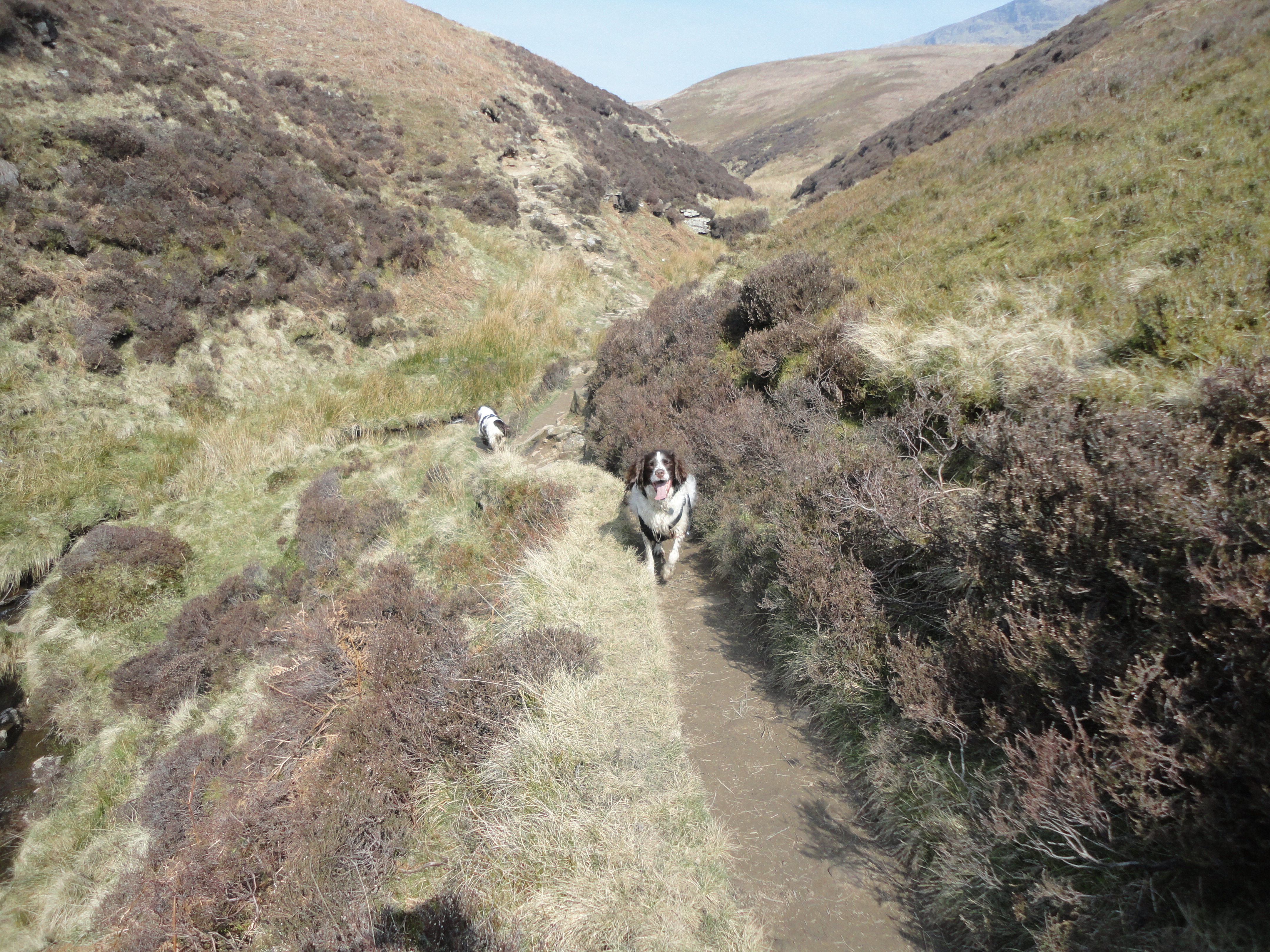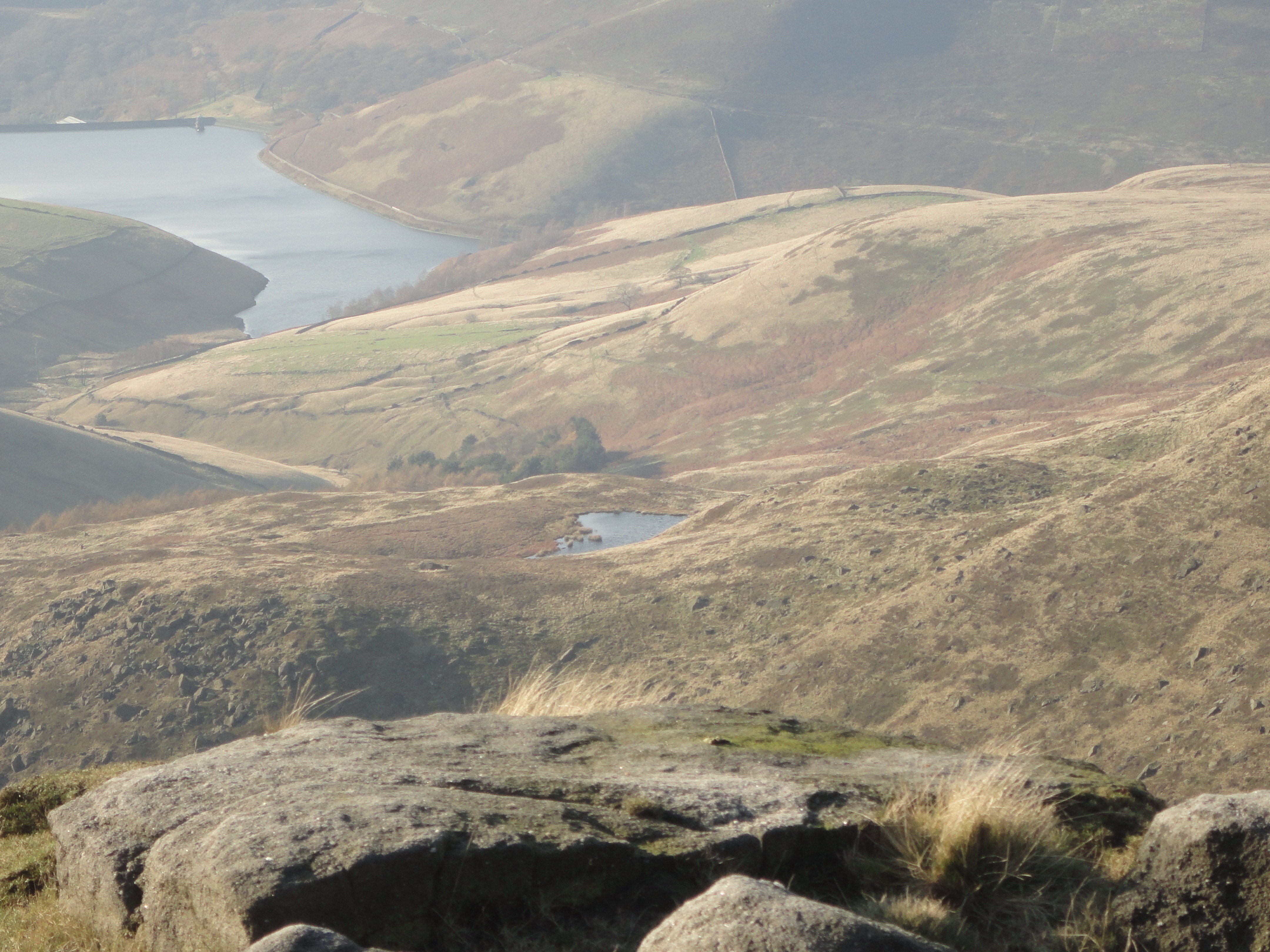 The path leads along the slopes above the reservoir and takes you onto William Clough, a very pleasant path up a gentle ravine, which ascends steadily until you merge with the Pennine Way at Ashop Head. Turn right and follow the path up for a short, steep-ish climb onto the edge of the Kinder plateau at Sandy Heys.